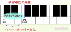 完全4度 2019/9/23 Tweet Pocket 基準の音から半音距離で5つ分上の音を表す間隔。基準から数えて4番目の音であるため、間にスケール上の2,3番目の音が存在する状態。音楽的調和の重要な間隔。 図: 参考:音楽空間の距離と五度圏①便利な手法と音楽的話 Tweet Pocket « Back to Glossary Index