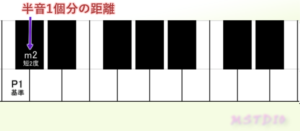 基準の音から半音距離で1つ分上の音を表す間隔